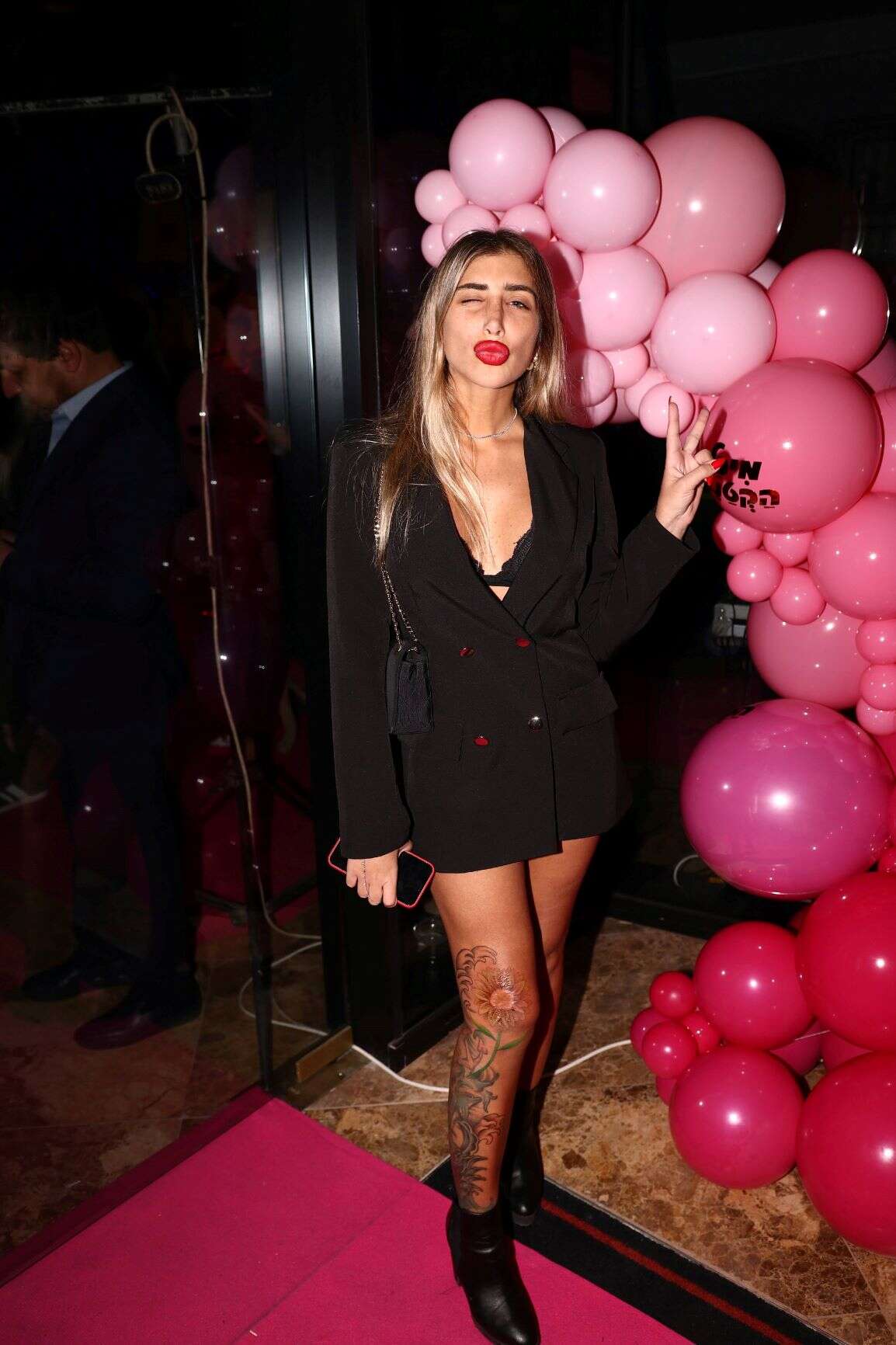 מעיין אשכנזי בז'קט שחור בסגירת דאבל ברסט, חזייה מבצבצת שחורה ומגפונים. למה לתת לנו כל הזמן לתהות האם יש מכנסונים מתחת? זה מעייף.