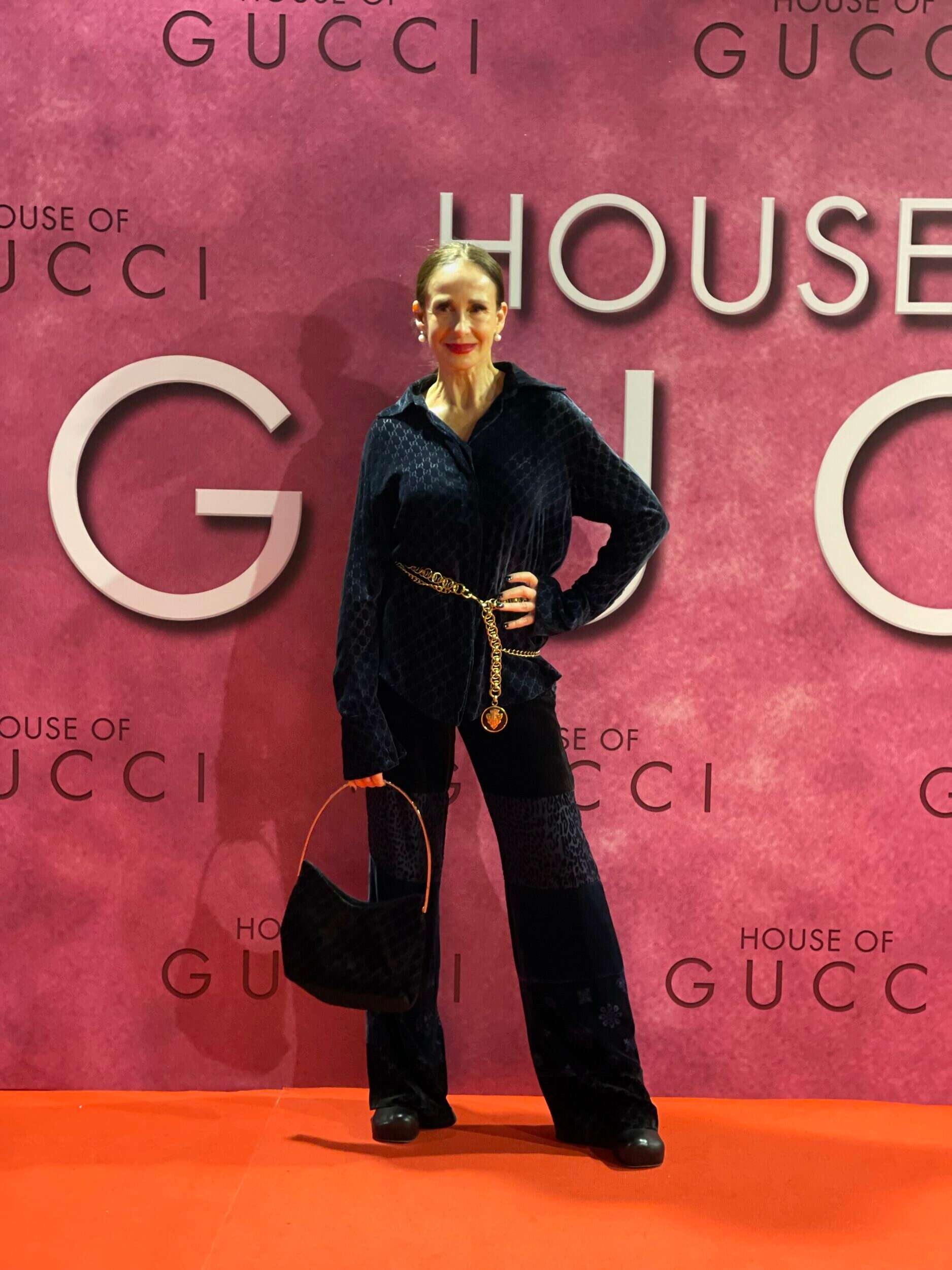 לאה שנירר אמנם לבשה טוטאל לוק של ג'וצ'י, אך חליפת הקטיפה הזכירה יותר חליפת פנאי ביתית. נזכיר שלפרמיירה בלונדון היא לבשה שמלת ערב מלאת גלאם של ברטה, אבל כשמדובר בניחוח ישראלי, שנירר מוותרת לעצמה.