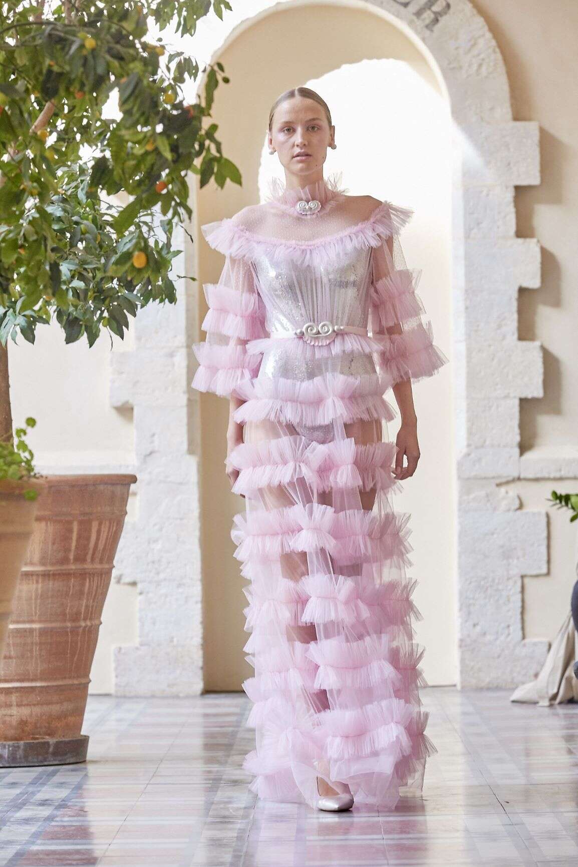 התצוגה התרכזה בעיקר בשמלות ערב מרהיבות שמתכתבות עם טרנדים עכשוויים כמו משחקי שקיפויות של טול ושיפון, שמככבים כיום בתצוגות שונות בעולם.