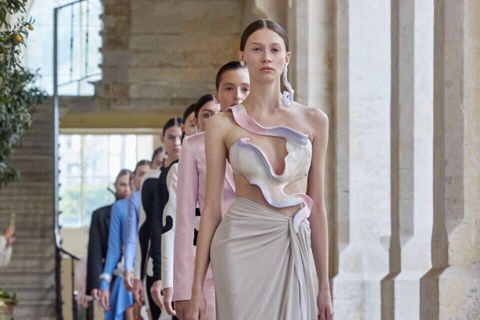 המוטיב המרכזי של התצוגה היה עולם המים, עם אלמנטים של קישוטים בצורת גלי ים, אלמוגים וצדפים. בין הגזרות היו בעיקר שמלות צמודות, שמלת פליסה מתנופפת, וגם חליפות מכנסיים בגזרת אוברסייז.