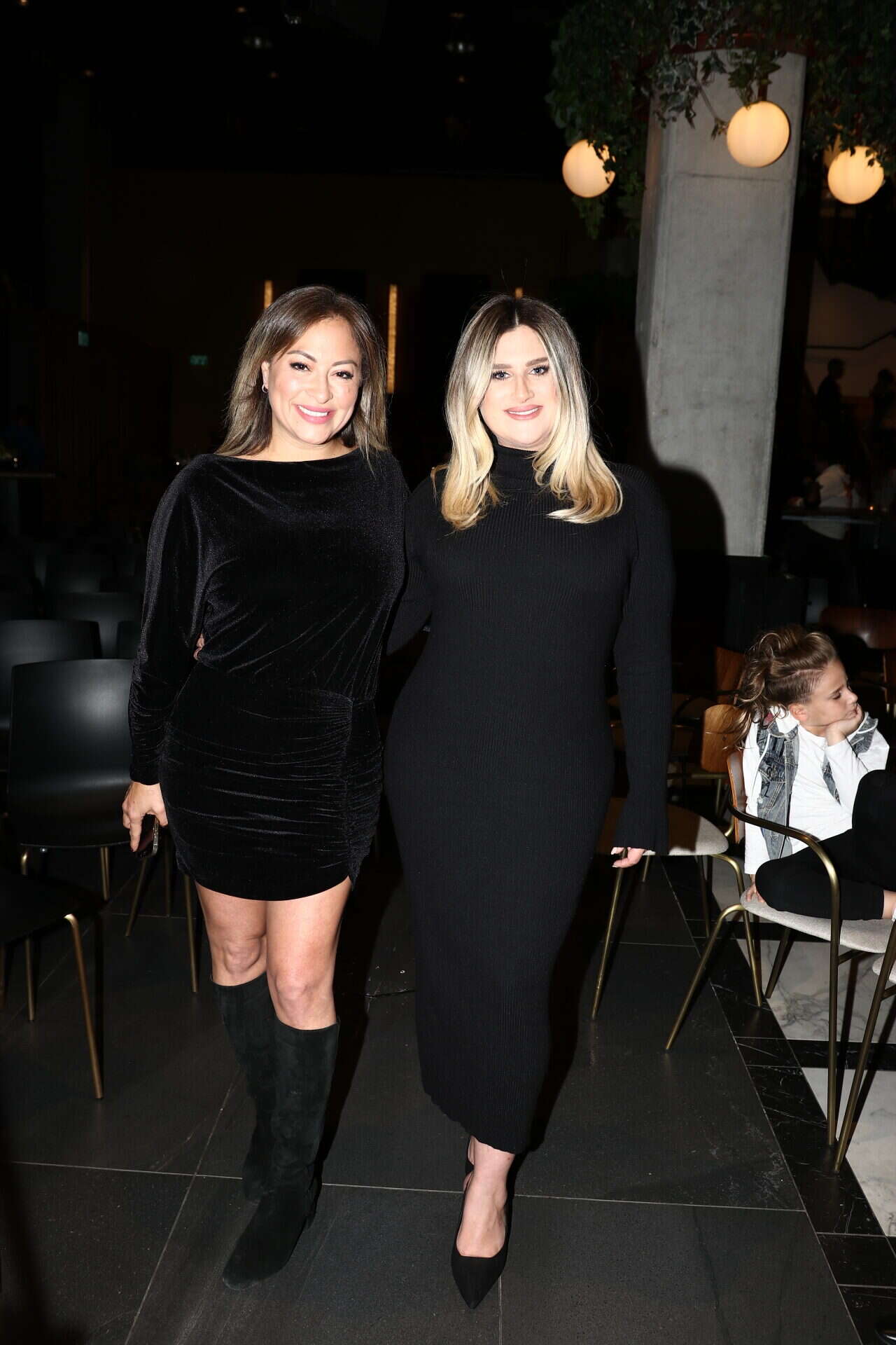 מי שמשכה את תשומת הלב של האורחים בהשקה של "הבוזגלוס" היא כמובן עדי בוזגלו, שילדה לפני כשבוע ושיתפה את כולנו בהתמודדויות שלה לאורך השנים עם המשקל. עדי הלכה על בטוח ולבשה שמלת סריג שחורה ארוכה, ללא מחשוף ועם נעלי עקב שחורות ומחמיאות ונראתה מעולה. איתה בתמונה, מלכת המחטבים ליהיא גרינר בשמלת קטיפה שחורה עם כיווצים בחלק השמאלי של החצאית. הגזרה של השמלה מאוד מחמיאה, ובכללי נראית מדויקת לאירוע מסוג זה. עם זאת, אפשר היה לבחור במגפיים בצבע שונה כדי ליצור יותר עניין וסטייל.