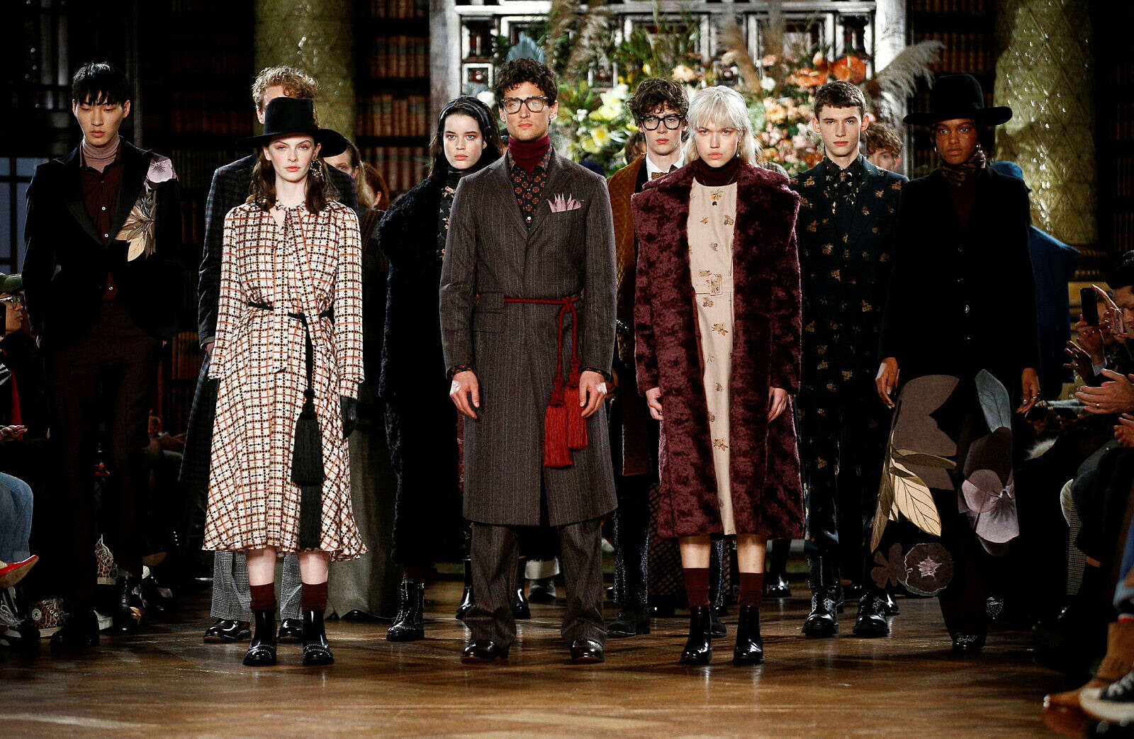 הקולקציה של ארדם הביאה פרחים לחורף. לא רק פרחים היו שם, אולי כל מה שאפשר להגדיר כנשי, החל מפנינים שנשזרו על בלייזר גברי בצבע חום ועד חגורות מותן מעור מבריק ששיוו מראה מודרני של גיישה לשמלות השיפון הפרחוניות. התצוגה היתה עמוסה ומלאת ניגודי הדפסים וטקסטורות. אם יש מטבח פיוז׳ן אז ארדם הוכיחו העונה שיש אופנת פיוז’ן.