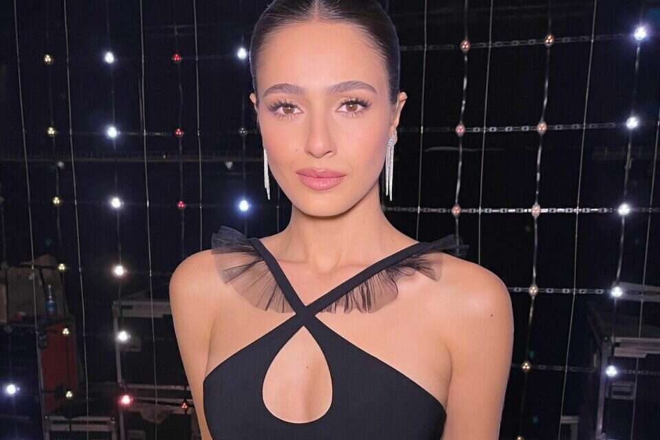 הלוק כלל פפיון קשירה דק בצווארון, כריות בכתפיים, כפתורי משי בשרוולים ותכשיטי יהלומים של ה.שטרן, כולל עגילים צמודים לאוזן וטבעות כוכבים על האצבעות. המנחה השלימה את המראה עם שיער רטוב ומשוך לאחור עם שביל בצד ואיפור נקי שיצר מראה אלגנטי, גברי ושיקי.