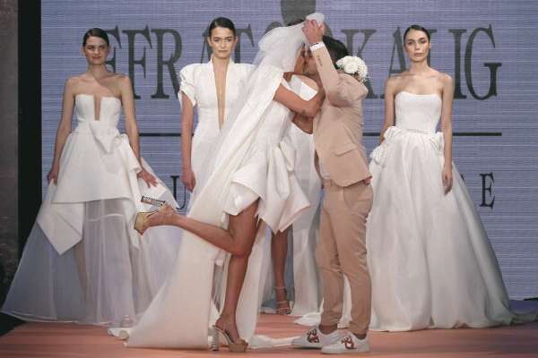 אחריו עלו שמלות בקו נקי של המעצבת אפרת קליג. חמישה דגמים שונים שלה חתמו את התצוגה, הדוגמנית ירדן ויזל שהציגה את השמלות עלתה בשמלה קצרה עם וולנים נפוחים, ורגע לפני שירדה מהבמה בן זוגה שצעד מוקדם יותר בבגדי חתן עלה, הצטרף אליה והעניק לה נשיקה מהסרטים. האם מדובר בהצהרת כוונות על המסלול?