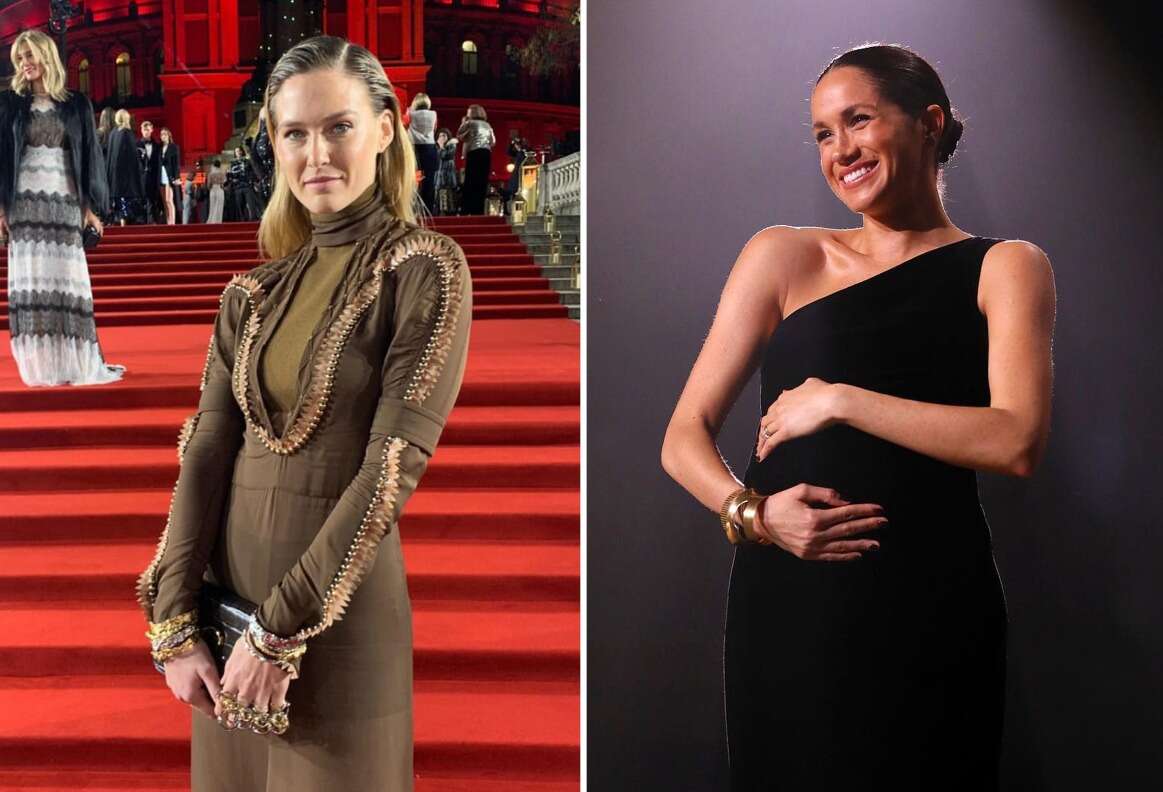 השמלה הדגישה את בטנה ההריונית של הנסיכה שהצליחה לגנוב את כל הפוקוס ולכופף שוב את חוקי בית המלוכה הבריטי - שלא נלהב לראות נסיכות עם כתפיים חשופות. מרקל אף מרחה לק שחור על הציפורניים, כאשר ידוע שלבנות בית המלוכה מותר למרוח רק לק שקוף או פרנץ'. במילים אחרות: אפשר להוציא את הנסיכה מהוליווד אבל אי אפשר להוציא את הגלאם של הוליווד מהנסיכה.