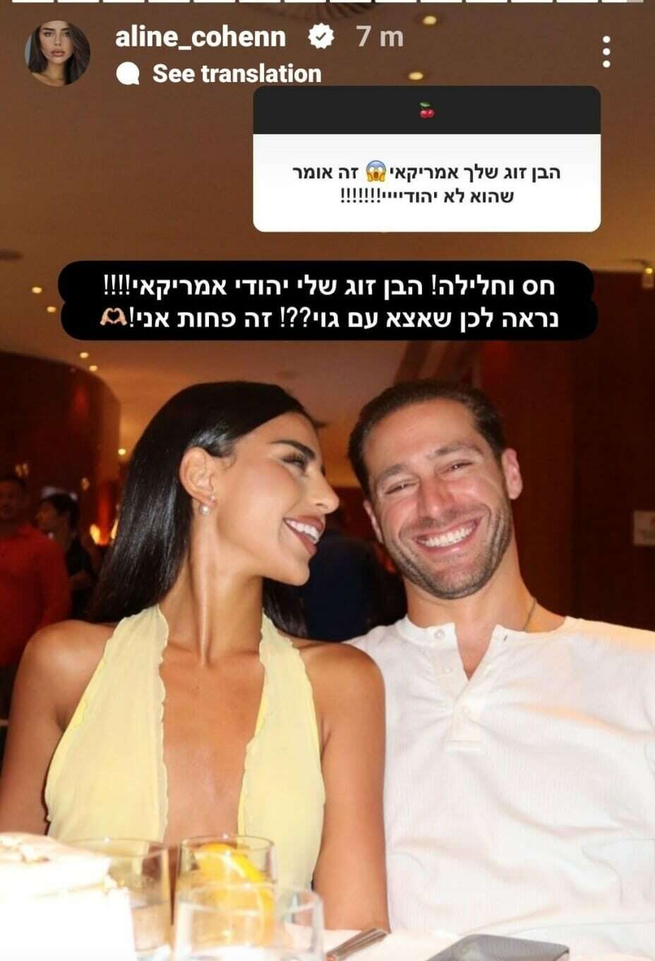 "הבן זוג שלך אמריקני. זה אומר שהוא לא יהודי", קבעה בנחרצות גולשת אחרת מה שהביא את אלין, המגיעה כזכור מבית מסורתי ושיתפה לא פעם כמה היא מכבדת את הדת, להבהיר: "חס וחלילה! הבן זוג שלי יהודי אמריקאי, ביקשה להבהיר לגבי כץ. "נראה לכן שאצא עם גוי? זה פחות אני".