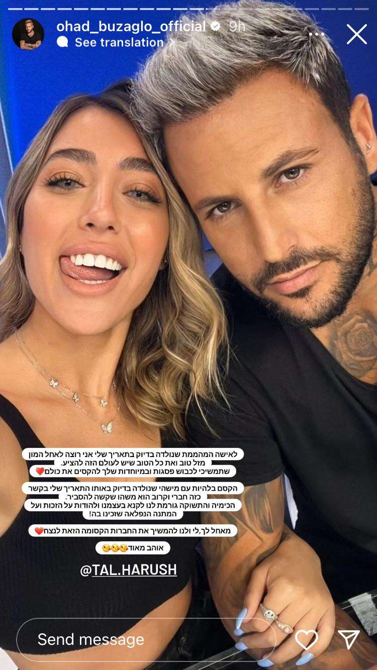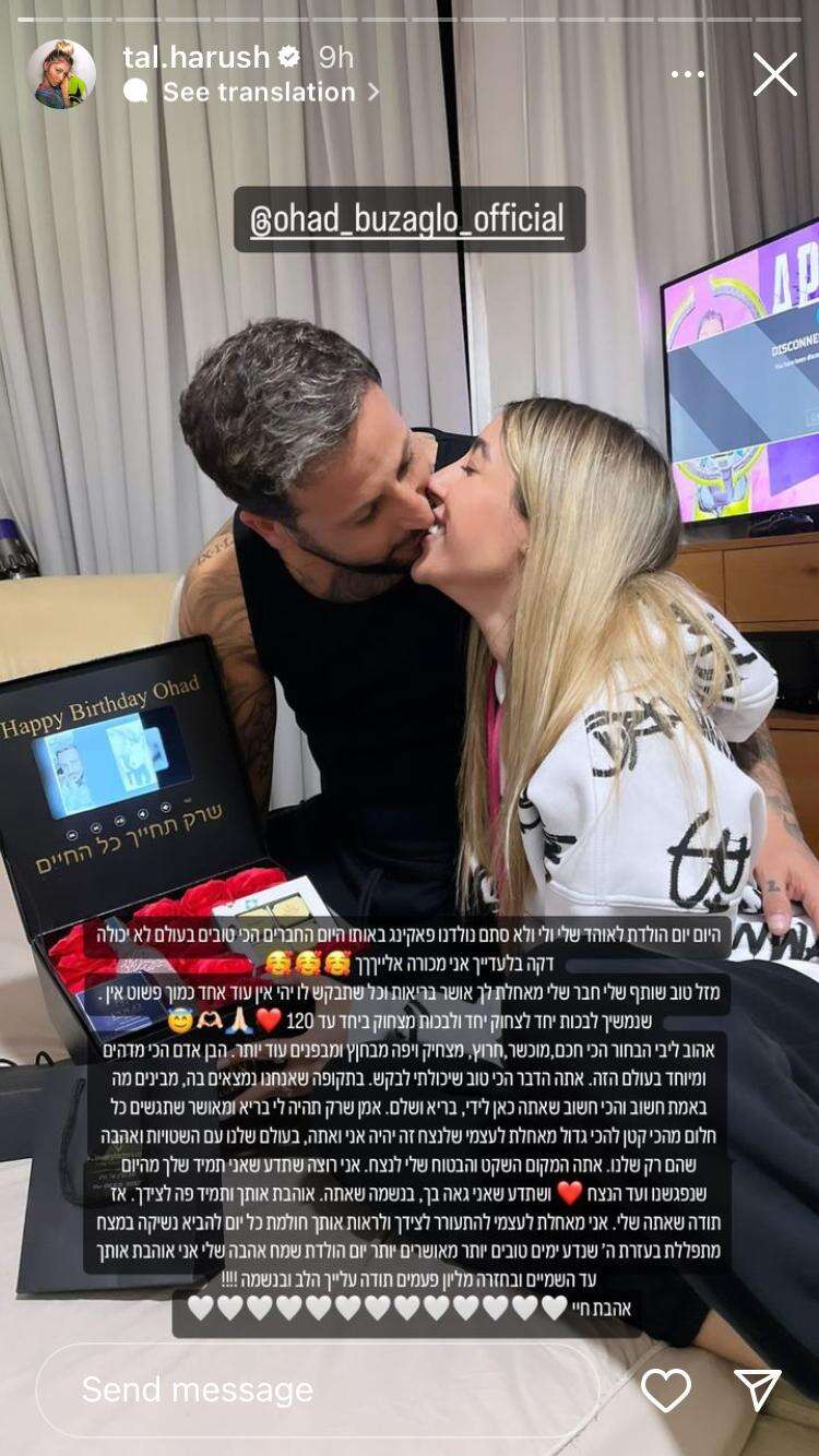 אחרי שעברה הפלה והקשר ביניהם נותק בחודש נובמבר האחרון, פרסמו היום (שלישי) אוהד בוזגלו וטל הרוש, כל אחד בעמודו באינסטגרם ברכה הדדית האחד לשנייה לרגל יום הולדתם שחל בדיוק באותו היום. בטקסט שכתבה הרוש על רקע תמונה של בוזגלו נושק לשפתיה, היא יצאה מגדרה כדי להביע כלפיו אהבה ולהפגין מצדה ביטחון בקשר. ומה כתב לה בתגובה?