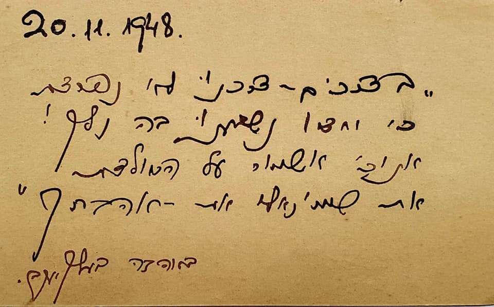 במכתב ובפתק אינטימיים, שכתב יעקב ללאה זמן קצר לפני נפילתו בקרב במלחמת העצמאות, ניתן לנצור את רוח הזמן. המסמכים, שהופקדו בארכיון המכון על ידי משפחתה של לאה כהן, חושפים את עוצמת אהבתם ומסירותם למולדת.
