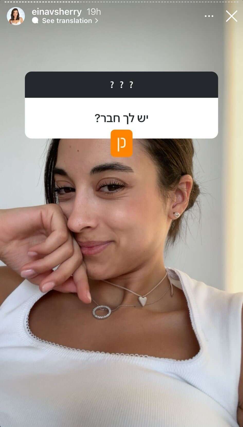 "יש לך חבר?" נשאלה עינב והשיבה מיד "כן" על גבי תמונה בה נראה שביקשה כמעט לקרוץ בשובבות לעוקבים עם החשיפה על בן הזוג המסתורי.