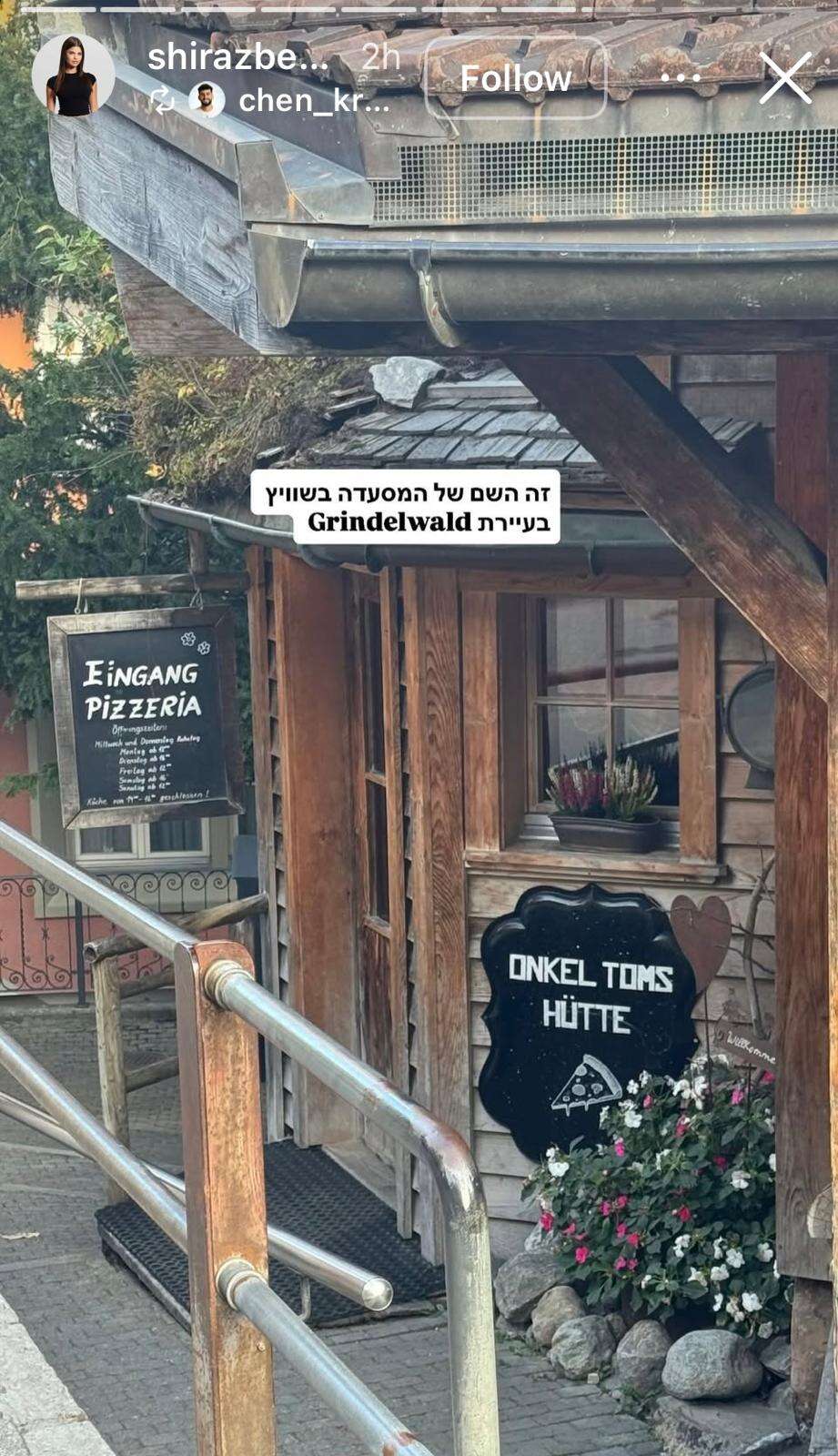 אחר כך, שירז העלתה את שם המסעדה וכתבה שמדובר בעיירה Grindelwald שבשוויץ. למרות שסולקו מהמסעדה הראשונה, נדמה שהשניים התפנקו מאוחר יותר בסטייק איכותי.