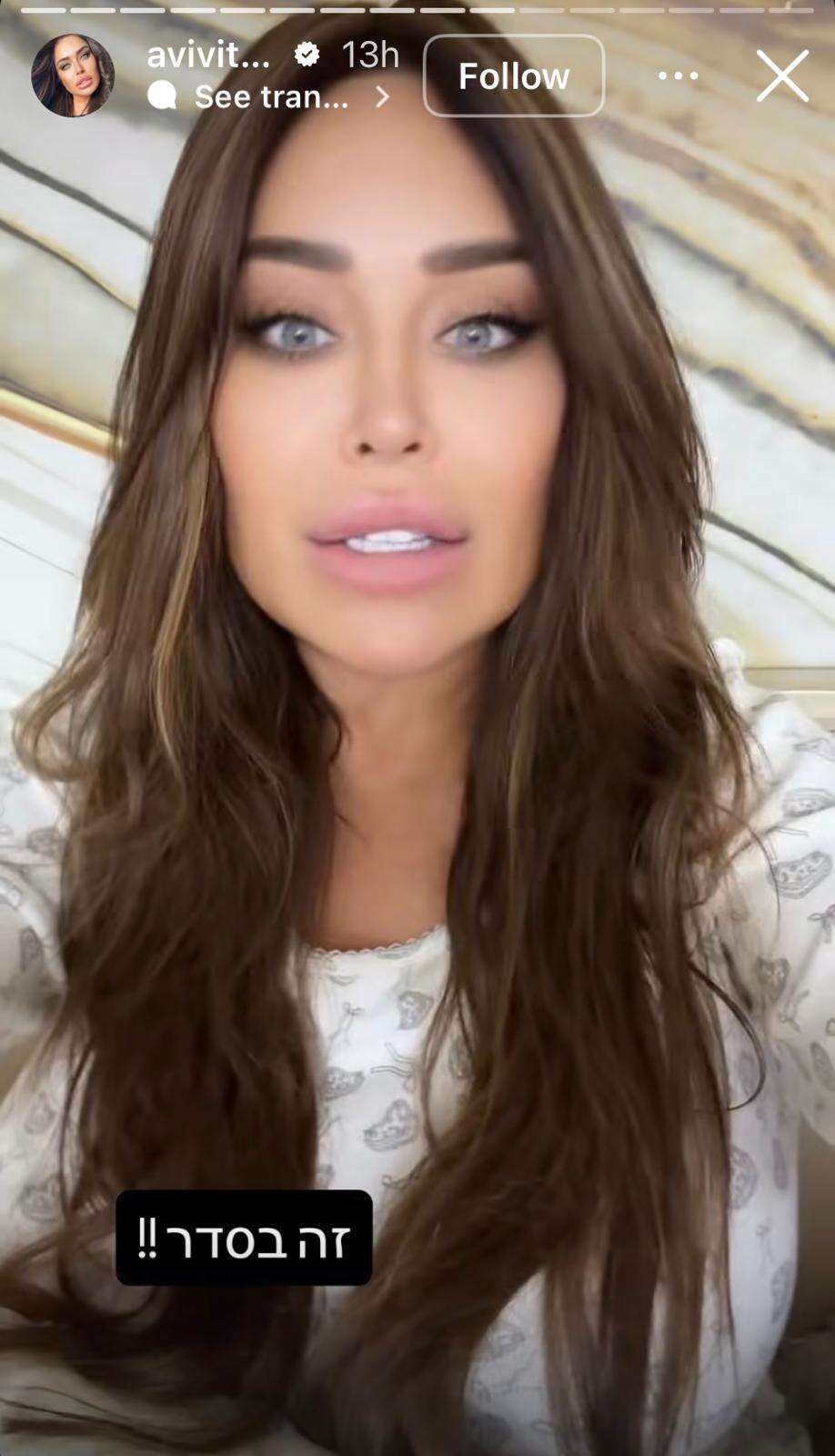 מתוך הסטורי של אביבית בר זוהר / אינסטגרם