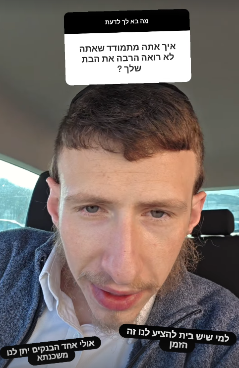 בכיתוב על הסטורי הוא הוסיף לסיכום שאם למישהו יש בית להציע לו זה הזמן והוסיף תקווה שאולי אחד הבנקים גם ייתן לו משכנתה.
