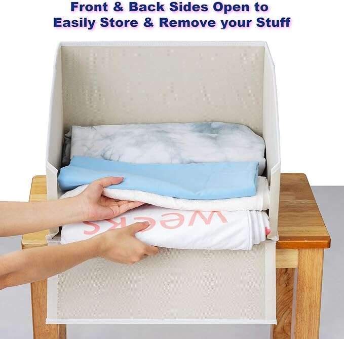הארגונית הזו היא בדיוק בגודל הנכון לקיפול סדינים, שמיכות, מצעים., מגבות או כל דבר אחר שאתם רוצים לשמור בארון עם גישה נוחה. הארגונית עשויה מבד איכותי וקשיח, אפשר בקלות לראות מה יש בפנים והטריק – דש קדמי נפתח ונסגר באמצעות סקוטשים שמאפשרים לפתוח, להוציא את מה שצריך ולסגור בחזרה.