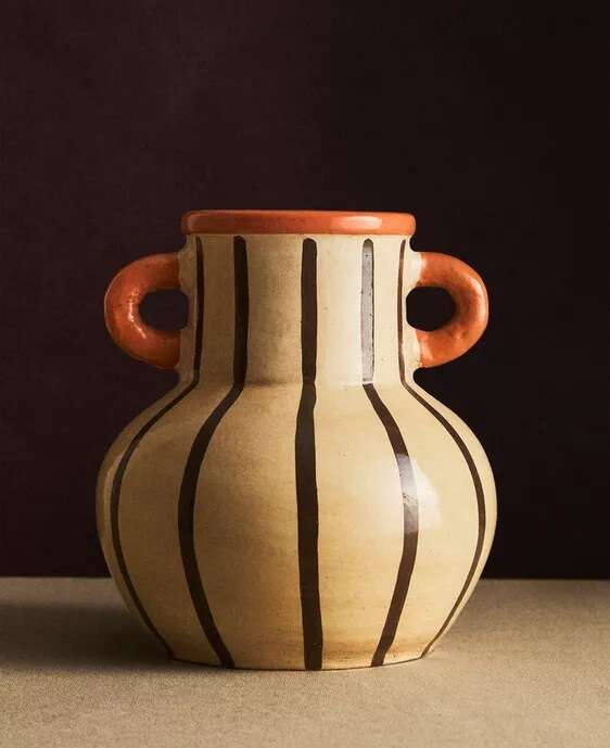כד חרס עם פסים. אפשר עם פרחים ויפה גם בלי. מחיר: 149.90 שקלים במקום 199 שקלים / זארה הום