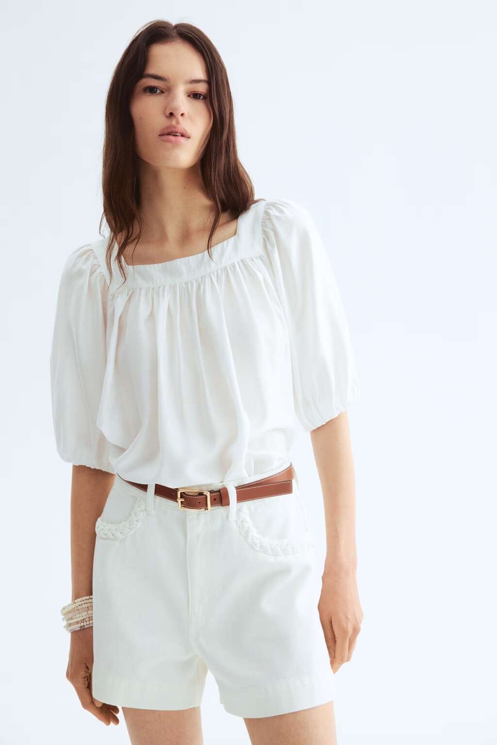 H&M חולצה לבנה עם שרוולי בלון, מחיר: 99.90 שקלים / יח"צ