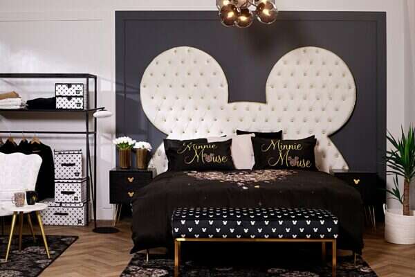 למעריצי מיקי מאוס, הכניסה לחנות מזמנת חוויה ייחודית שכוללת שער מוזהב עם הסמל האייקוני של מיקי. החנות מחולקת בצורה שמאפשרת שיטוט חופשי עם תצוגת הום סטיילינג מושקעת, המדמה חדר שינה למבוגרים עם שידות וכורסה בצד, וחלוק שמונח מעל. בצד השני יש מנורות צד ותאורת קיר וגם שטיחים קטנים ליד המיטה.