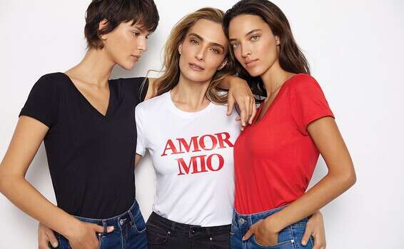 הסייל: הרשת מציעה מארז אופנתי של 3 חולצות טי-שירט רומנטיות בשלושה צבעים: אדום, לבן ושחור. החולצה הלבנה בעלת הדפס רומנטי "AMOR MIO".