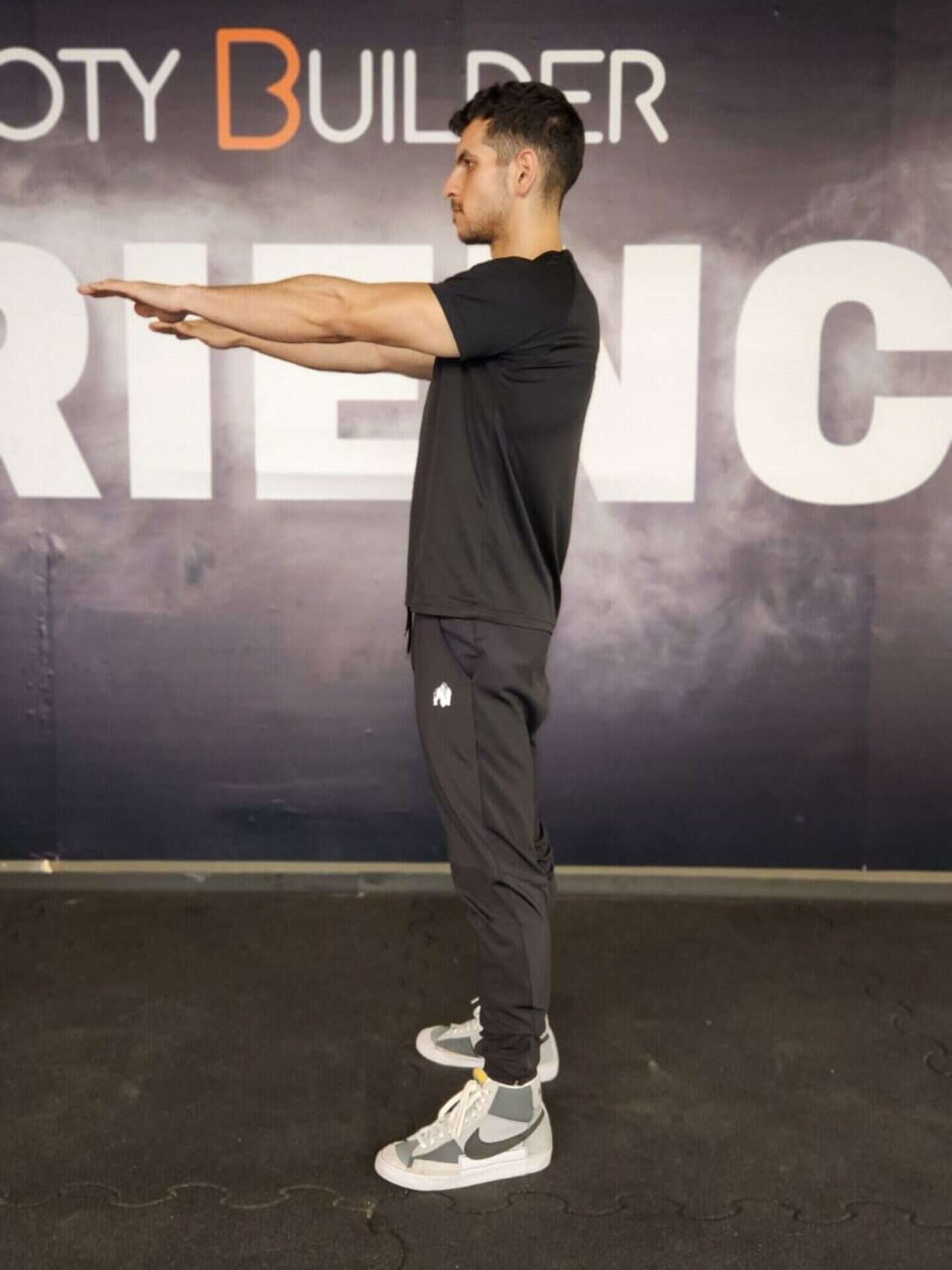 יש לעבור ממצב עמידה למצב של ישיבה שפופה, כאשר לוקחים את הישבן לאחור ולא מרימים את העקבים מהרצפה. מבצעים שלושה סטים, כאשר בכל סט יש לחזור על התנועה 15 פעמים.
