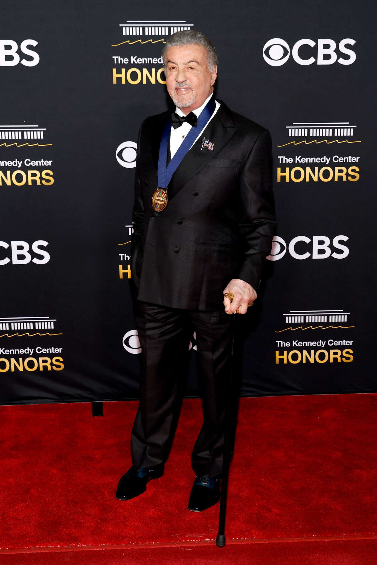 סטאלון התייצב על השטיח האדום של הטקס היוקרתי בבית האופרה של וושינגטון, כשהוא לבוש בטוקסידו שחור יוקרתי כשלצידו אשתו ג'ניפר פלאבין. בידו הימנית סטאלון אחז במקל הליכה שחור עם ידית מוזהבת שסיפק לו תמיכה, ואיתו הוא גם נצפה בטקס הענקת המדליות בבית הלבן יום קודם לכן.