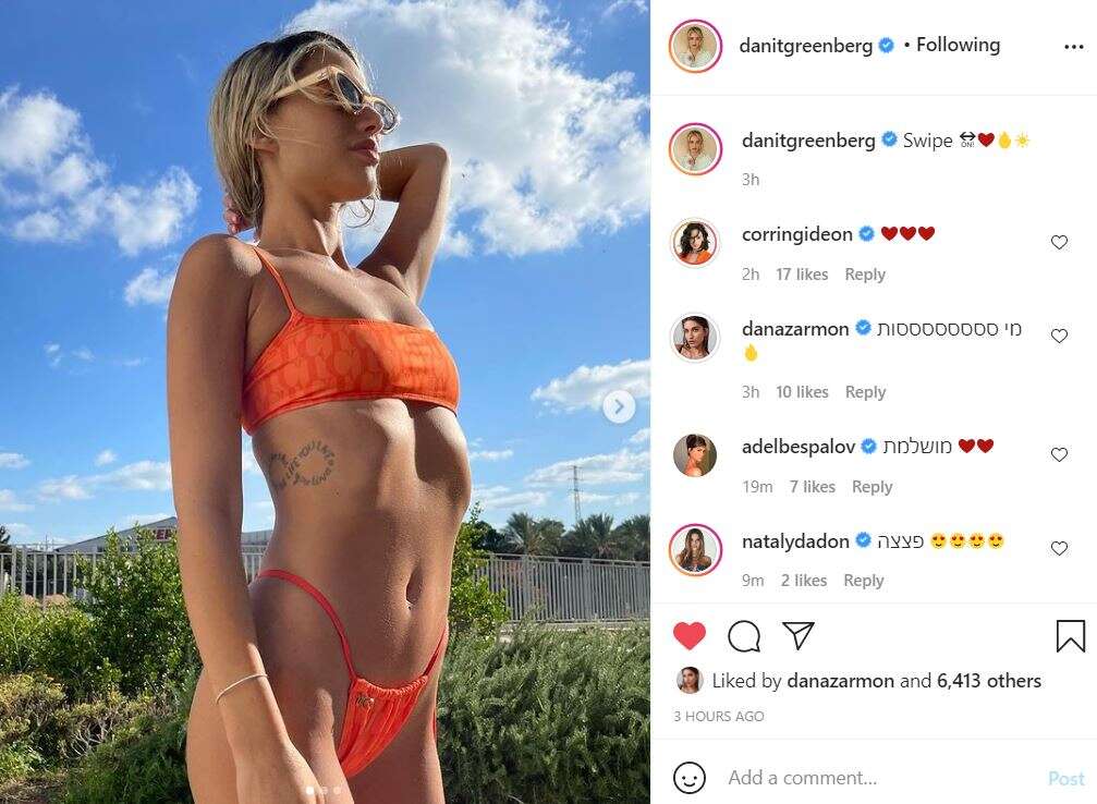תמונת ביקיני לוהטת של דנית גרינברג היא לא מחזה שאינו שכיח בחשבון האינסטגרם שלה, אלא שהפעם גרינברג הצליחה שלא במכוון לגרום למדד החום והעצבים לעלות מכיוון מעט לא צפוי.