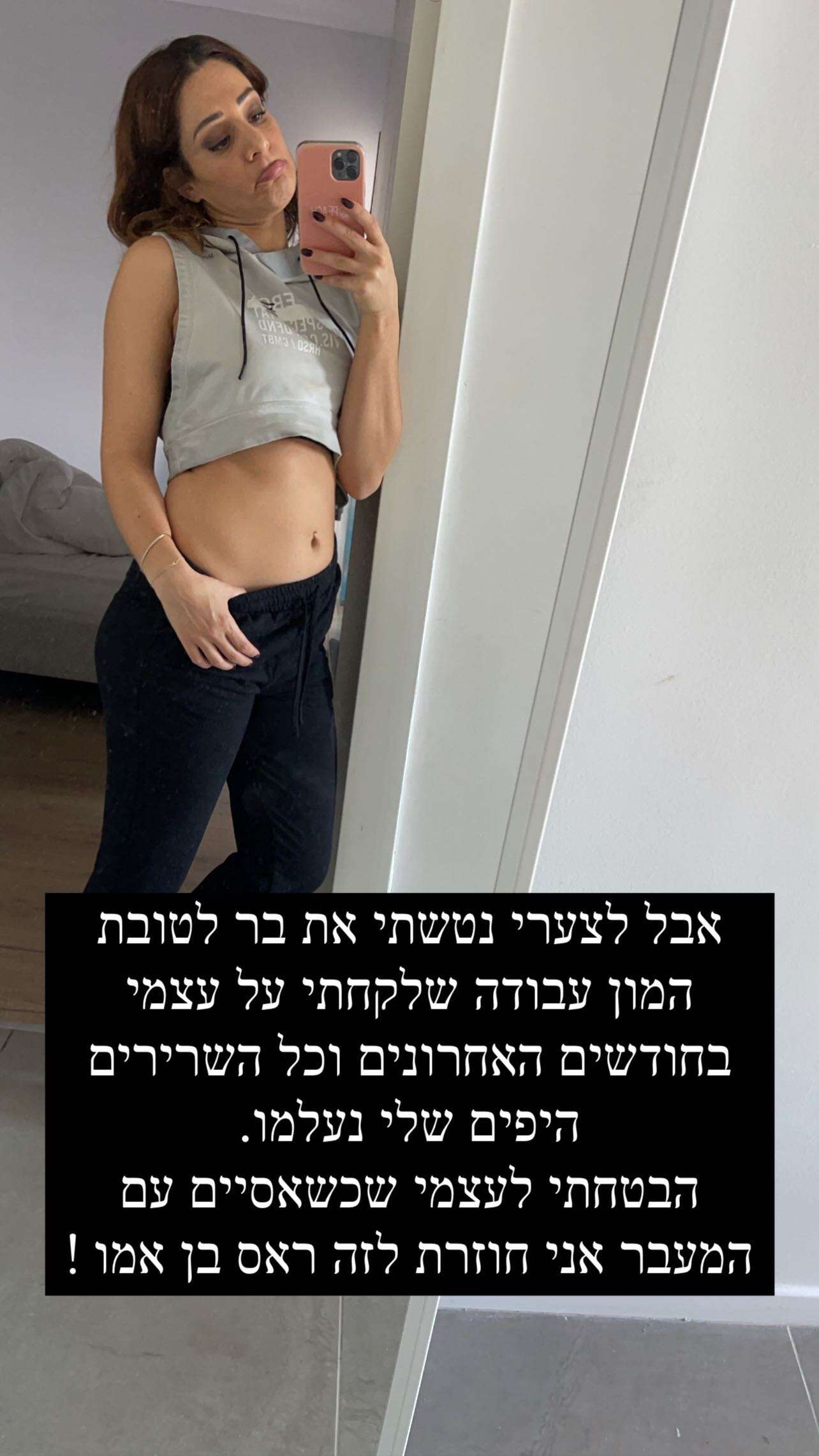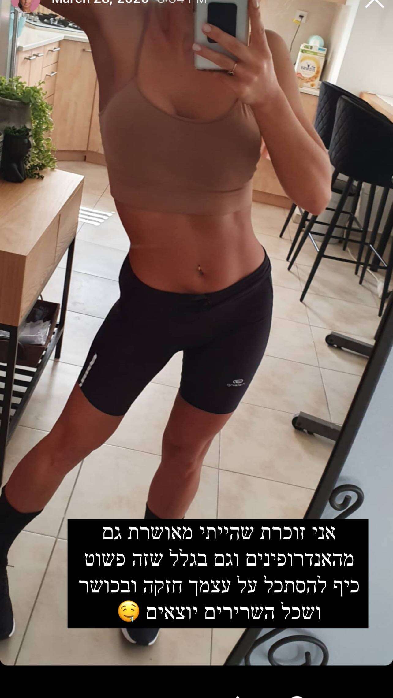 בסוף האימון גם חשפה את אחוזי השומן שלה ודאגה גם להביע הערכה ואהבה למי שהולך מעתה לגרום לה להזיע מכל נקב בגוף: "היה לי וואו, הוא טוב המניאק הזה".