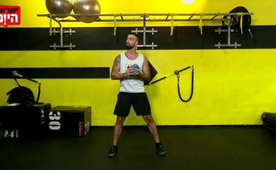 מאור ועופר לוי מסטודיו no limit בגדרה באימון שכולל סקווטים, חיזוק לרגליים, בטן, גב וזרועות, עם בונוס של אימון זוגי - אבא ובן. לאורך האימון תצטרכו להביא מגבת. מאור מציין כי לאימון אפקטיבי המגבת צריכה להיות מתוחה לכל אורך האימון, וכי לא משנה אם תבחרו במגבת גדולה או קטנה.