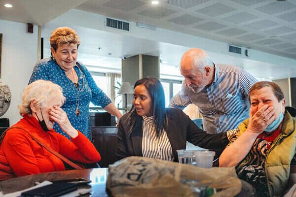 בתום המפגש התלוויתי אל השרה לבית מלון, כדי לפגוש עולים שהגיעו בשבועיים האחרונים. שטה מבהירה להם מייד שהיא כאן בשבילם, לטפל בכל בעיות הקליטה. הלובי מלא בנשים, ילדים, מבוגרים, כולם חרדים לגורל אלו שנשארו מאחור. ויקטוריה פרוב בת ה־81 לא מסוגלת להכיל את הדאגה ופורצת בבכי, ותמנו שטה עוצרת את דבריה וניגשת אליה.