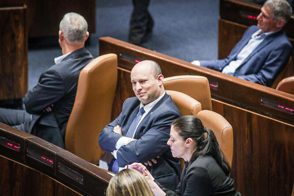 בעמדת חולשה. ראש הממשלה בנט השבוע, במליאת הכנסת, צילום: אורן בן חקון