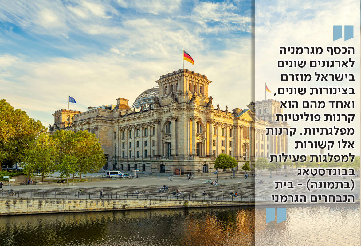 בעשור האחרון מימנו ישויות מדינתיות זרות עשרות ארגונים המזוהים עם השמאל הרך והשמאל הקיצוני והאנטי־ציוני, בהיקף העולה על 890 מיליון שקלים. גרמניה, המצטיינת בכך במיוחד, העבירה לפחות 150 מיליון שקלים לארגונים כאלו - יותר מכל מדינה אחרת. הכסף מוזרם בצינורות שונים, ואחד מהם הוא קרנות פוליטיות מפלגתיות, המקושרות למפלגות פעילות בבונדסטאג, בית הנבחרים הפדרלי.