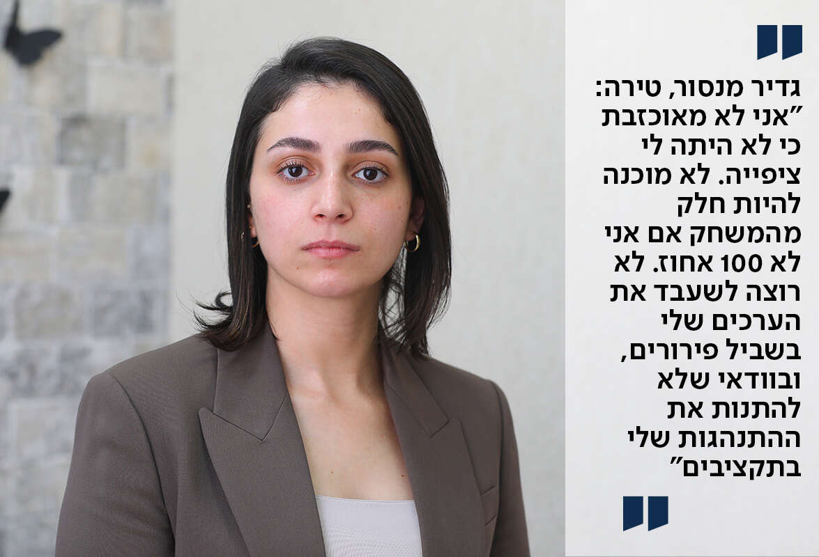לעומת פאדי, לגדיר מנסור מטירה אין שום התלבטות. "אני לא מצביעה בבחירות הבאות", היא קובעת נחרצות כשאני שואל אותה אם היא מאוכזבת. "אפתיע אותך בתשובתי, אני ממש לא מאוכזבת, כי מלכתחילה לא היתה לי ציפייה מהם. כבר חטפתי סטירה והתבגרתי ממנה. הבנתי שאני לא מוכנה בשום פנים ואופן להיות חלק מהמשחק אם אני לא 100% אני. לא רוצה להמר על העתיד שלי, לא לשעבד את הערכים שלי ובוודאי לא להסתפק בפירורים או להתנות את ההתנהגות שלי בקבלת תקציבים".