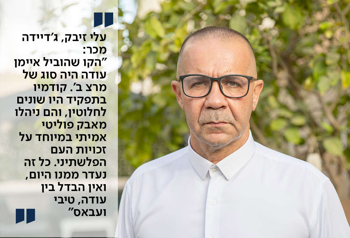 גם עלי זיבק מג'דיידה מכר בין המתלבטים. הוא פעיל חברתי ופוליטי שכבר עשרות שנים לא מפספס אף הפגנה או מחאה פוליטית או חברתית. הכי רחוק מאדישות או מהימנעות פוליטית. איש שטח של השתתפות ישירה ומעורבות יומיומית. ולמרות פעילותו האקטיבית, הוא מספר על התלבטות. "בעבר הצבעתי עבור בל"ד, שבתקופת עזמי בשארה הובילה את רעיון מדינת כל אזרחיה הנותן שוויון לכלל אזרחי המדינה כולל ייצוג שוויוני בחוק, במוסדות ובסמלי המדינה. אך מי שהנהיגו את המפלגה כשלו בהנהגה, מה שגרם לנטישה במיוחד בתקופת המלחמה בסוריה". החיבור למשותפת העמיק את האכזבה, לדבריו. "הקו שהוביל מנהיג המשותפת, איש חד"ש איימן עודה, היה בעצם סוג של מרצ ב'. קודמיו בתפקיד היו שונים לחלוטין והם ניהלו מאבק פוליטי אמיתי במיוחד על זכויות העם הפלשתיני. כל זה נעדר ממנו היום, ואין כל הבדל בין עודה, טיבי ועבאס. האחרון היה 'אמיץ' ויצא מהארון ראשון, אחרי ההמלצה פעמיים על גנץ. לכן אני בונה על הדרך השלישית שבחרה בל"ד מבלי להיות במשחק ההמלצות, כי זה לא עניין שלי כערבי".