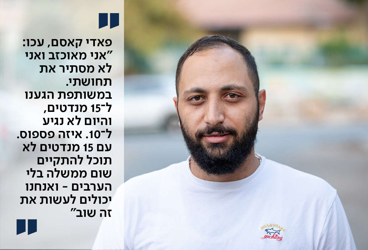 פאדי קאסם, פעיל חברתי מעכו, נמנה עם תומכי תע"ל. כבר כעת ברור לו שזה עומד להיות מורכב וקשה להוציא אנשים לקלפי ביום הבחירות, ויחד עם זאת הוא אומר: "אני מאוד מאמין בחברי המשותפת וביכולות שלהם, במיוחד של ח"כ אחמד טיבי, שהניסיון שלו תרם רבות לחברה הערבית". קאסם מודה שגם בו יש כעס על המנהיגות הערבית. "כן, אני מאוכזב, אני לא מסתיר את תחושתי. ואני אומר לכל המנהיגים, די. תפסיקו. כולנו בסירה אחת. במשותפת הגענו ל־15 מנדטים, והיום לא נגיע ל־10. איזה פספוס. עם 15 מנדטים לא תוכל להתקיים שום ממשלה בלי הערבים - ואנחנו יכולים לעשות את זה שוב".
