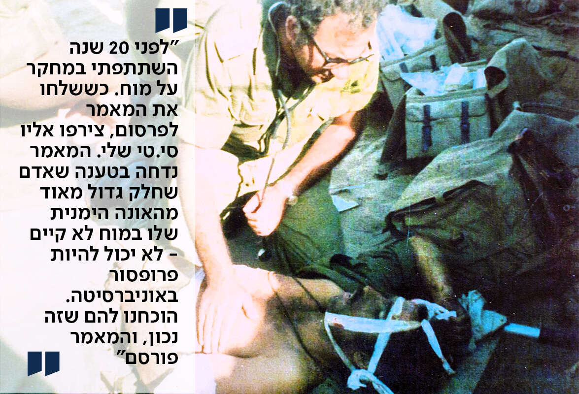 המומחים לא נתנו לו אז סיכוי ממשי להצליח בתוכניותיו. "כשהתחלתי ללמוד לתואר ראשון, הרופא של משרד הביטחון אמר שאם אצליח ללמוד יצמחו לו שערות על כף היד. אין לי תובנות על זה, רק למדתי עד כמה מעט הרופאים באמת יודעים. אגב, לפני 20 שנה השתתפתי במשך חצי שנה במחקר על מוח באוניברסיטת ברמינגהם. בדקו שם כל מיני סוגים של תפקודים מוחיים, וכששלחו את המאמר לפרסום הם צירפו אליו סי.טי שלי ואת תיאור הפציינט. המאמר נדחה על ידי כתב העת בטענה שאדם עם סי.טי כזה - שחלק גדול מאוד מהאונה הימנית שלו במוח לא קיים - לא יכול להיות פרופסור באוניברסיטה. בסוף הוכחנו להם שזה נכון, והמאמר פורסם".