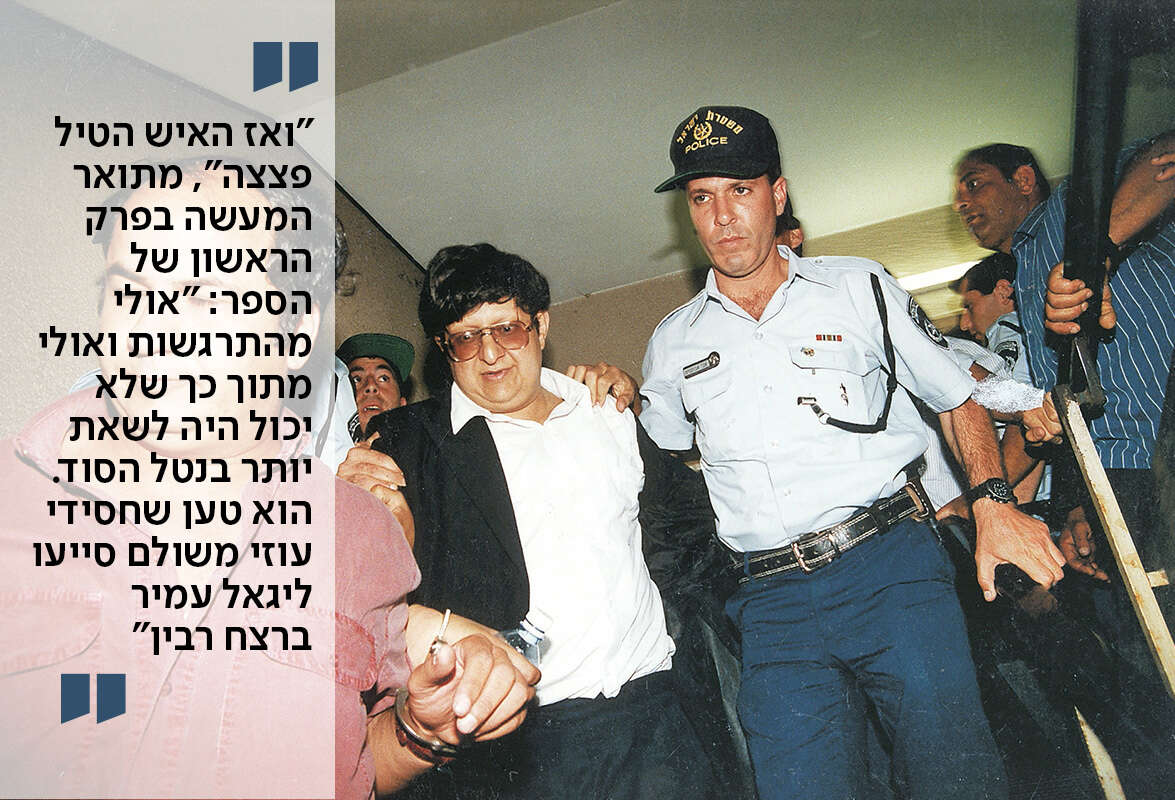 "ואז האיש הטיל פצצה", מתואר המעשה בפרק הראשון של הספר: "אולי מהתרגשות ואולי מתוך כך שלא יכול היה לשאת יותר בנטל הסוד. הוא טען שחסידי עוזי משולם סייעו ליגאל עמיר ברצח רבין". האיש תיאר, כך על פי זלינגר, שבזמן היריות היה הוא עצמו יחד עם חסידים נוספים בחניון הצפוני, סמוך למדרגות העירייה. הוא תיאר במדויק את זירת הרצח, כולל פרטים מוכמנים, והסביר שהצעקה "סרק, סרק" היתה חלק אחרון בתרגיל מתוחכם שערכו אנשי עוזי משולם בזירה, ושמטרתו היתה לקלף את מערך האבטחה סביב ראש הממשלה. האיש התגאה בכך ש"מי שצעק 'סרק, סרק' היה אחד מאיתנו", ואף מסר את תיאורו ושמו: מאיר משולם. האיש גם תיאר שאותו מאיר משולם שוחח עם יגאל עמיר 20 דקות לפני הרצח.