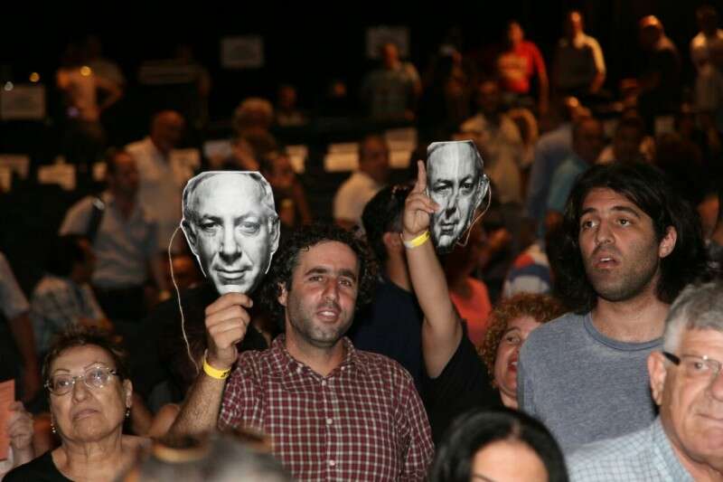 מוחים כנגד הרצוג, ולא מאפשרים לו להשלים את דבריו // צילום: גדעון מרקוביץ'