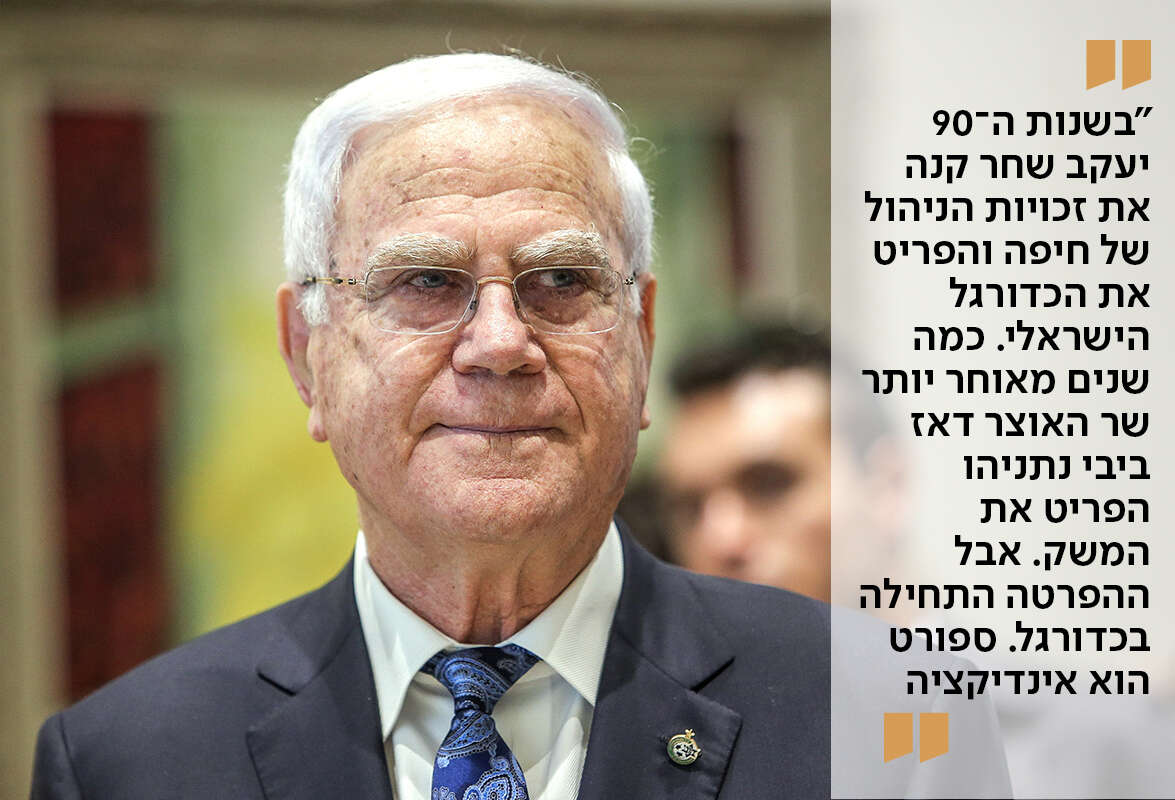 "דוגמה נוספת היא בית"ר ירושלים, שזכתה בגביע המדינה ב־1976. זו הקבוצה הרוויזיוניסטית האנטי־ממסדית הראשונה, וניצחונה הוא מבחינתי סמן למהפך הפוליטי ב־77'. הדוגמה השלישית מתרחשת בתחילת שנות ה־90. יעקב שחר מנס ציונה קונה זכויות ניהול של קבוצת כדורגל בחיפה. למעשה, הוא מפריט את הכדורגל הישראלי, שעד אז היה מאוד ממוסד. כמה שנים מאוחר יותר, שר האוצר דאז ביבי נתניהו מפריט את המשק. אבל ההפרטה התחילה קודם כל בכדורגל".