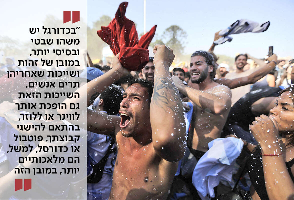 הזכרת את עניין הילודה המוגברת לאחר זכייה בגביע העולם. אני תוהה אם כדורגל מחבר אותנו מצד אחד אל תחושת נצחיות, בדיוק כפי שקבוצות כדורגל עשויות להתקיים שנים על גבי שנים; ומצד שני - ברבדים עמוקים יותר – הוא מחבר אותנו אף לחוויות סיום שקשורות לסופיות החיים.