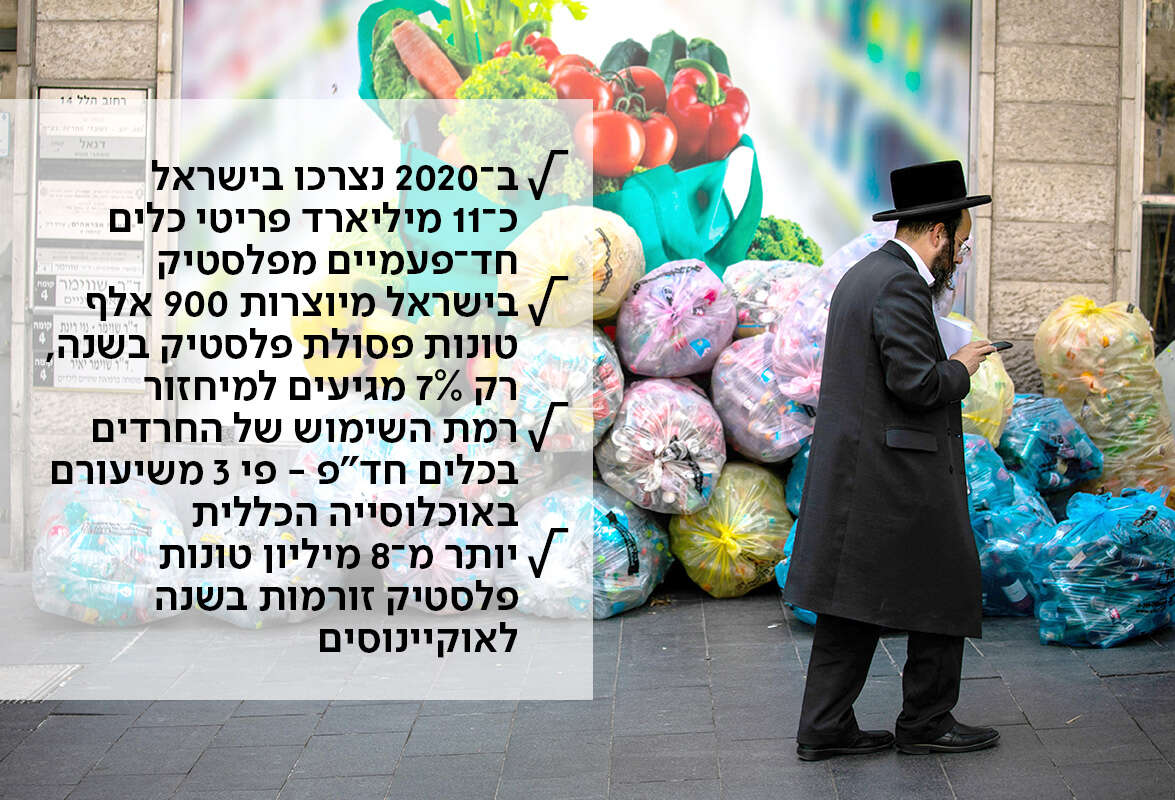 95% מהישראלים, מכל קבוצות האוכלוסייה, צורכים כלים חד"פ בהיקפים שונים. אצלי בבית השימוש בחד"פ הפך נדיר יותר ובשנה האחרונה, כמו ישראלים רבים, גם לחיק הטבע אנחנו יוצאים עם רב־פעמי. בחברה החרדית שיעור השימוש בכלים חד־פעמיים גבוה פי שלושה משיעור קבוצה זו בקרב האוכלוסייה.