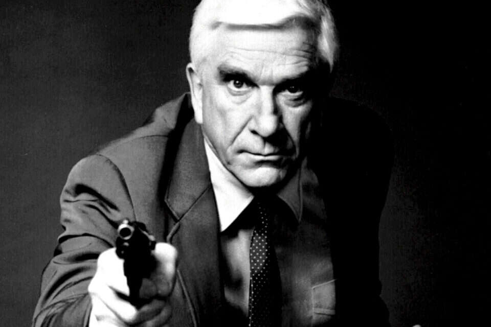 לזלי נילסן כפרנק דרבין בסרט "האקדח מת מצחוק", צילום: איי.פי