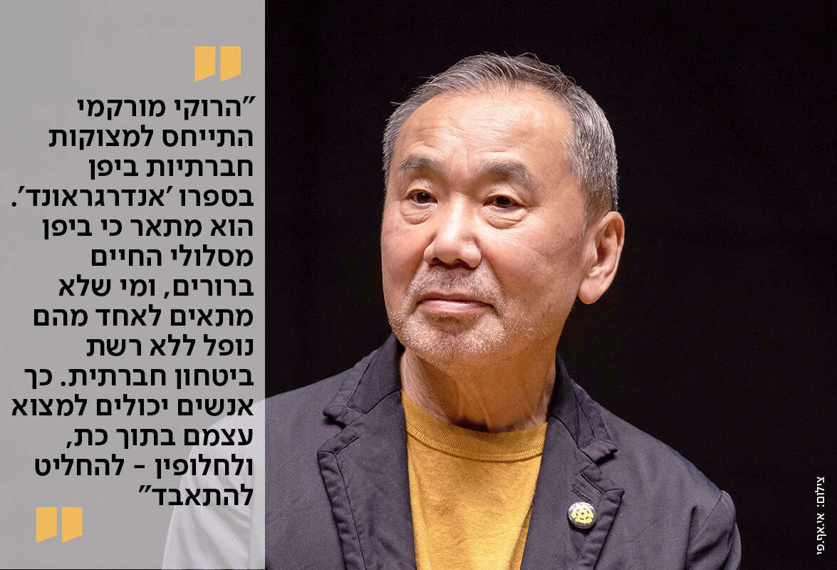 "הרוקי מורקמי התייחס למצוקות חברתיות ביפן בספרו 'אנדרגראונד'. הספר נכתב בעקבות מתקפת הגז ברכבת התחתית של טוקיו ב־1995. מורקמי ראיין חלק מקורבנות התקיפה וטרוריסטים שהיו חלק מהכת 'אום שינריקיו' שביצעה את הפיגוע. מורקמי מתאר בהקדמת הספר כי ביפן יש מסלולי חיים ברורים, ומי שלא מתאים לאחד מהם - נופל ללא רשת ביטחון חברתית שתצילו. כך אנשים יכולים למצוא עצמם במהירות בתוך כת, ולחלופין להחליט שהם מאסו בחיים ולהתאבד".