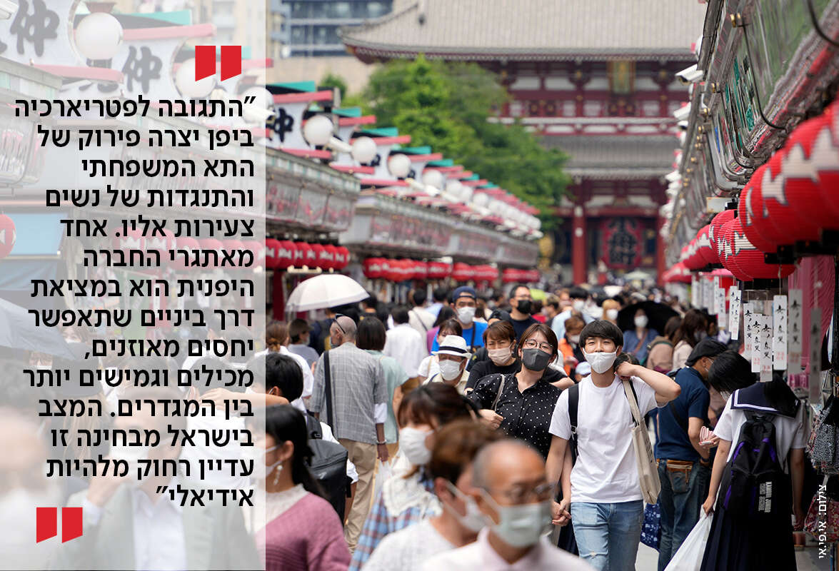 "הפטריארכיה ביפן יצרה נשים מודחקות, והתגובה לפטריארכיה יצרה פירוק מלא של התא המשפחתי והתנגדות של נשים צעירות אליו. אני חושבת שאחד מאתגרי החברה היפנית הוא במציאת דרך ביניים שתאפשר יחסים מאוזנים, גמישים ומכילים יותר בין המגדרים. המצב בישראל מבחינה זו עדיין רחוק מלהיות אידיאלי, אבל הוא הרבה יותר טוב במובנים רבים מאשר ביפן".
