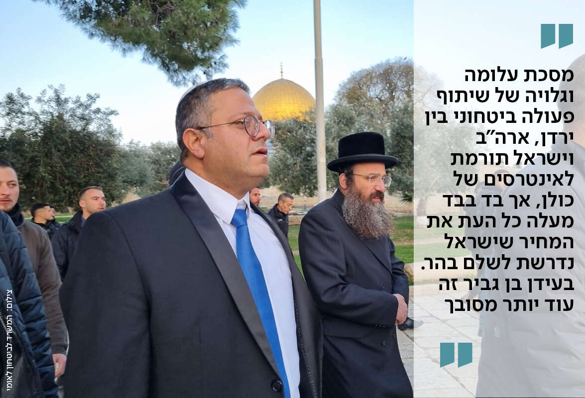 כבר שנים שהמעמד הירדני בהר ובאל־אקצא נתפס על ידי בית המלוכה הירדני כעוגן מרכזי, דתי והיסטורי, ליציבות השלטון וללגיטימציה שלו. בישראל וגם בארה"ב מכירים בכך. ירדן ויציבות המשטר בה קריטיות לישראל ולארה"ב בשל מסכת שלמה, עלומה בדרך כלל, של שיתוף פעולה ביטחוני, מודיעיני וכלכלי שנטווה עימה. ביקורו בישראל של היועץ לביטחון לאומי של ארה"ב, ג'ייק סאליבן, לפני כשבוע ימים, אנו מגלים כאן, עסק גם במצב הפנימי בירדן ובסוגיית הר הבית, ולא רק בסוגיית איראן וסעודיה. סאליבן נפגש עם נתניהו, הרצוג, גלנט ושר החוץ כהן ודיבר על האינטרסים המשותפים בין המדינות. הוא ביקש שישראל תעזור לירדן. פגישת נתניהו והמלך עבדאללה ביום שלישי האחרון היא חלק מהתהליך הזה, שהחל כבר במהלך ביקורו של שר הביטחון גלנט, אצל עבדאללה, לפני למעלה משבועיים. בפגישה השבוע הבטיח רה"מ למלך, לשמר את הסטטוס קוו ואת מעמד הוואקף בהר הבית.