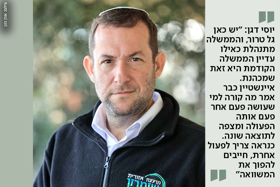 "אלה ימים קשים, אבל צריך לשמור על פרופורציות. ידענו קשים מהם", אומר יוסי דגן, ראש המועצה האזורית שומרון. "צריך להחזיר את ההרתעה, לגדוע את הטרור לפני שהוא הופך לגל גדול. האחריות היא על הממשלה: היא הבטיחה, עכשיו היא צריכה לקיים".