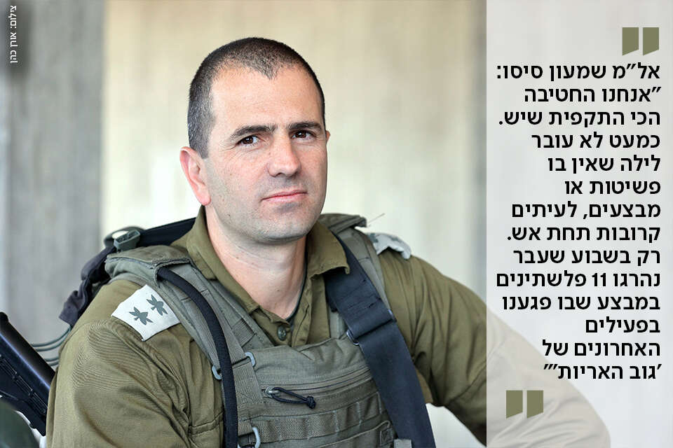 אל"מ שמעון סיסו מפקד על חטיבת שומרון מאז ספטמבר האחרון. קצין קרבי מצטיין, שהגזרה הזאת לא זרה לו. הוא עשה בה פעילות מבצעית כמפקד סיירת גולני, ואחר כך כמפקד גדוד הסיור של החטיבה. "מה שקרה כאן השבוע היה הכי קיצוני שפגשתי", הוא אומר.