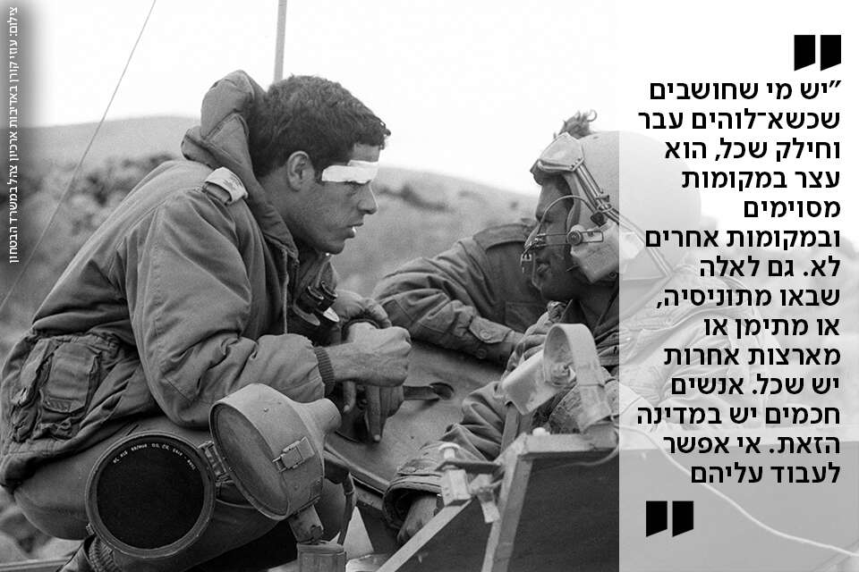 "מלחמת יום הכיפורים היא שבר. קיבלנו סטירת לחי, ועד היום הלחי אדומה. אתה יודע מה? אולי טוב שהיא פרצה בעיתוי הזה. כי ב־74' או ב־75' לא היינו עומדים בזה, עמדו לפרק יחידות. יש א־לוהים בשמיים. איך אני יודע? אם הוא היה רוצה להשמיד אותנו, הוא היה מתחיל את המלחמה בראש השנה. היינו עם המנגלים, סביב הכנרת, תקועים בראש השנה בדרך לרמת הגולן, בארבעה ימים של חופש".