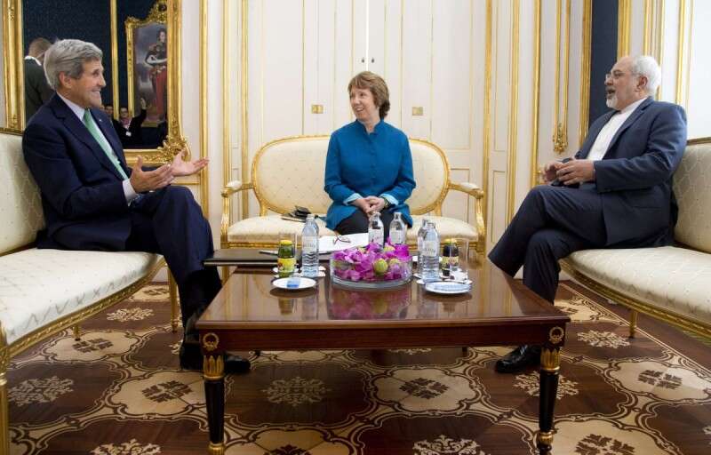 שלב קריטי בשיחות המערב עם איראן. מימין לשמאל: מוחמד זריף, קתרין אשטון וג'ון קרי, אתמול // צילום: רויטרס