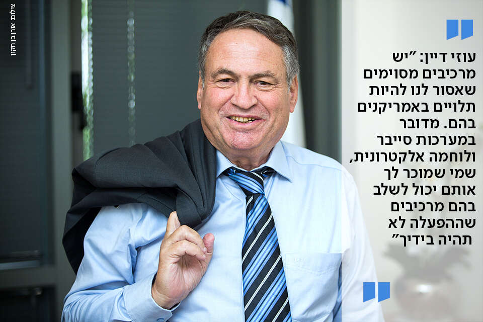 "תפיסת היסוד שלי", מבהיר דיין, "נכתבה לפני הרבה מאוד שנים על ידי חז"ל: 'אם אין אני לי - מי לי'. אפשר לצמצם, וצריך לשאוף לצמצם, את התלות הביטחונית בארה"ב באמצעות חיזוק התעשיות הצבאיות שלנו. כבר כיום יש מרכיבים מסוימים שבהם אסור לנו להיות תלויים באמריקנים. מדובר במערכות סייבר ובמעטפות של לוחמה אלקטרונית שמי שמוכר לך אותן יכול לשלב בהן מרכיבים שיגרמו לכך שההפעלה לא תהיה בידיך. זה עניין מאוד רגיש, שבו חייבים להתעקש מול האמריקנים על מרכיבים ישראליים".