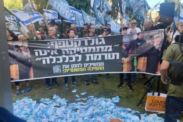 ביום שלישי השבוע התייצבה פרופ' אליס ברזיס מול ביתו של שר השיכון יצחק גולדקנופף בירושלים יחד עם מוחים מתנועת המחאה "אחים לנשק". מול הבית פיזרו המוחים ערימת "שטרות" של 200 שקלים. ככל הנראה התכוונו לרמוז, בקטנה, שהחרדים רודפי בצע.