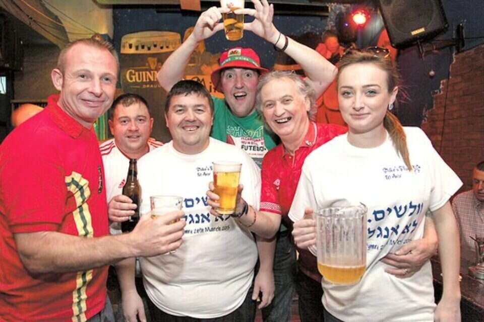 השישה, חלק מכוח חלוץ שנשלח ארצה מטעם התאחדות האוהדים הוולשית, שמו פעמיהם לעבר פאב ה"מייק'ס פלייס" ובחנו בקפדנות את תפריט המשקאות. עם 1,000 אוהדים שהחלו לפקוד את ארץ הקודש החל מאתמול, מישהו הרי צריך היה לעשות את עבודת ההכנה.