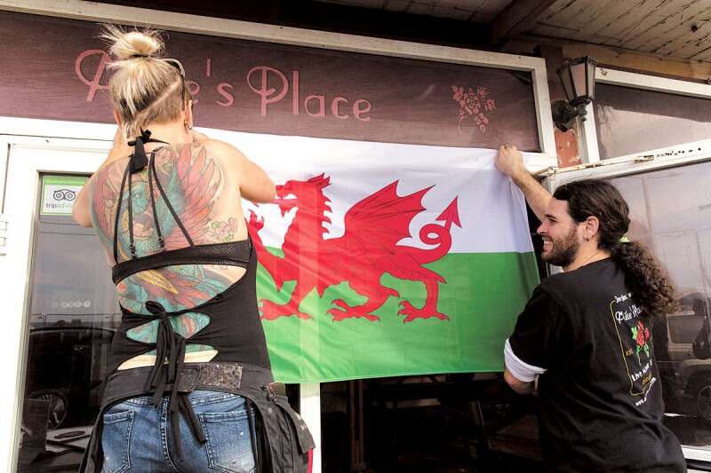 אוהדי נבחרת וויילס מתכוננים למשחק בפאב "מייק'ס פלייס" בתל אביב // צילום: גדעון מרקוביץ // וולשים, לא אנגלים. אוהדי נבחרת וויילס מתכוננים למשחק בפאב "מייק'ס פלייס" בתל אביב